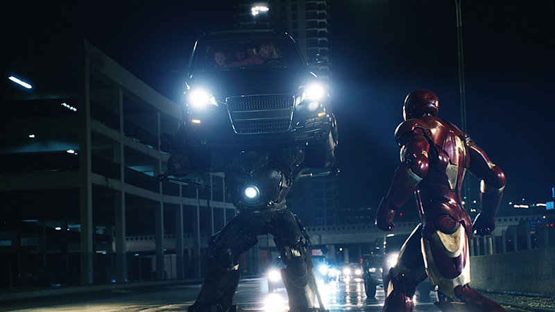 Stark’s work on the armored suit looks, in many instances, like play, but it’s building toward something much more serious, whether he realizes it or not. One night while he’s working on the armor, a TV newscast catches his attention. It’s a report from Gulmira, Yinsen’s village in Central Asia, chronicling the takeover of the town by the same warlords who took Stark captive. Stark is galvanized, perhaps in part because he’s reminded of the loss of his own parents when the reporter speaks of an orphaned child in the terrorized village asking, “Where are my mother and father?”